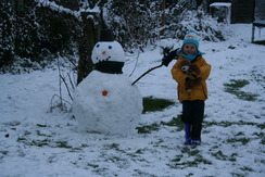 Jack helped built a snowman and it was very nice. He also had a cup of hot chocolate.