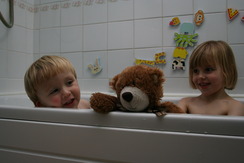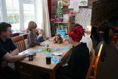 Playing walk the plank with cousin Chantelle, Nan and Grandad.