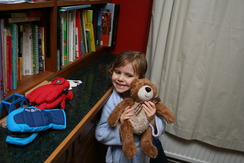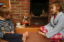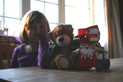 I liked doing all the things he did with me and Cameron and he had a nice little rest at my house. He enjoyed his rest. The most fun things he did were playing with the dinosaur robot and the jigsaws.